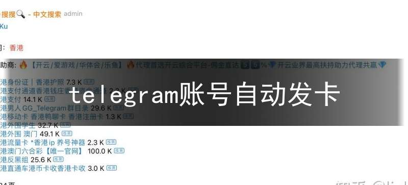 什么是Telegram账号自动发卡? Telegram账号自动发卡是指通过Telegram这个即时通讯应用程序,自动发送虚拟卡片(如礼品卡、游戏充值卡等)给用户。这种行为涉及到一定的安全和法律风险,因为在一些国家和地区,将虚拟卡片发送给用户...